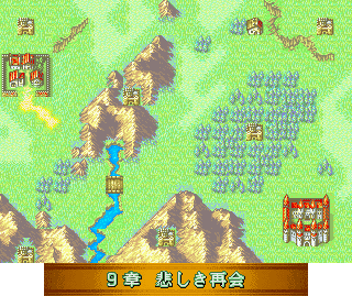 村庄:たいまつ 攻略: 1-5回合内有敌军大量增援,左上方的岩ソルジャー增援、右上方的岩アーチャー增援、左下方的岩山贼增援、地图中央下方的岩山贼增援、地图中央靠左、山上山贼增援、中央靠右、森林ソシアルナイト增援。普通模式重开始时强行使用骑士之证转职。主角的精灵剑对骑兵类有特效,可以利用一番,BOSS击倒靠主角也行,精灵剑不是盖的。雾的出现导致可视范围大大减少,但盗贼的可视范围相对比其他同伴高,村庄中得到的火把可以好好利用,使用后提高可视范围。 困难模式不同点: